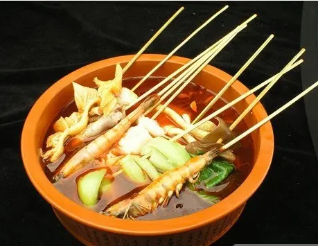 This dish, originating from Sichuan cuisine, is named for its unique serving style, where ingredients are skewered on bamboo sticks. Chuanchuan Xiang features a variety of items like meats, vegetables, and tofu, all skewered and then cooked in a spicy, flavorful broth. The broth is typically infused with the characteristic Sichuan málà (numbing and spicy) flavors derived from Sichuan peppercorns and chili oil. This dish is not only a culinary experience but also a social one, as diners often cook their skewers together in a shared pot, making it a popular choice for communal dining.