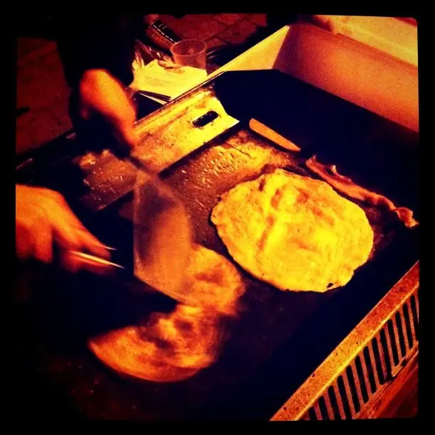 Crisp hand cakes (hand grasp cakes) are a snack food fad that has swept mainland China in recent years. In Chengdu, shops selling crisp hand cakes are a common sight. It’s not surprising to see groups of people anxiously waiting in long lines for this popular food. One reason crisp hand cakes are so popular is because you can make them anyway you want. Crisp hand cakes can be made with eggs, bacon, or vegetables. You can add ketchup, jam or whatever your heart desires.
