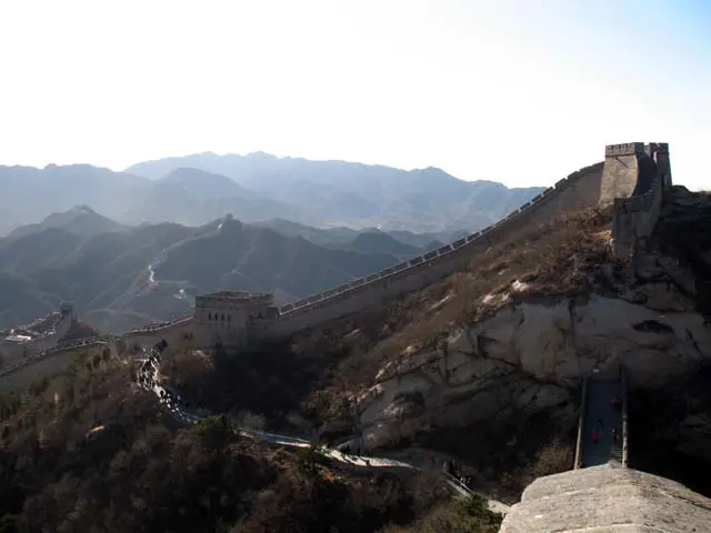 A Brief history of the Great Wall of China:Historically, the Great Wall was a combined construction effort of two sections: the Qin dynasty construction (built around 220 B.C.) and the Ming dynasty completion of the Great Wall in 1369. However, the Qin Great Wall is so damaged that most sections are barely preserved, and what we call the Great Wall today mainly refers to the Ming Great Wall. This 6,700 km. (4,200 mi.) length of wall starts at the Shanhai Pass in Hebei Province, just north of Beijing, on the east coast of China, and ends at the Jiayuguan Pass in China’s western Gansu province. |