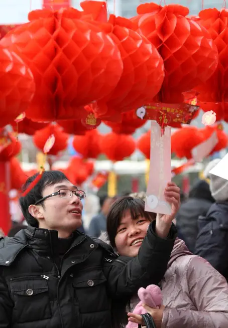 2. Lantern riddles are another not-to-miss aspect of the festival. The tradition of writing lantern riddles emerged in the Song Dynasty (960-1279) and has become popular across China. People will write out riddles and paste them on their lanterns hanging on display at the lantern fairs. While appreciating the design and craftwork of the lantern, visitors will try to guess the answer to the riddle on each lantern. If the visitor has a guess, they can approach the creator of the riddle, and correct answers are often rewarded with a small gift.