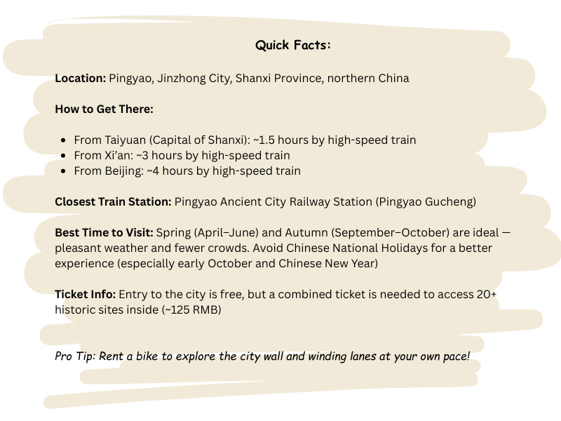 The charm of Pingyao lies in its ancient architecture, cobbled alleyways, traditional lantern-lit streets, and deep cultural roots. It’s a must-visit for travelers seeking an authentic slice of historical China without the over-commercialization found in some other tourist spots.