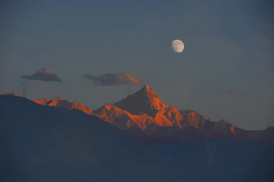 This image shows the twilight scene of Minya Konka. Almost all Minya Konka pictures consist of two necessary elements – the clouds and snow covered peak. It is the closest point to heaven, matching its name “the King of Mountain Shu”. It conveys a feeling of solemn, holy in silence. The sunset casts on on the peak, thus adding more solemn atmosphere. Generally, the moon is a symbol for lonely and desolate things. But when seeing it with Minya Konka, it seems to add a piece of friendliness. Can you generate the same feeling? Every year, many photographers travel to Sichuan from far to take photos of the great scenery of Minya Konka.