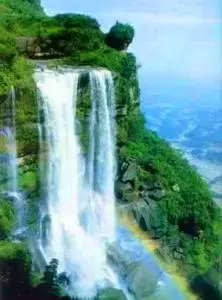 There is a famous scenic spot in the Bamboo Sea – A waterfall about 200 m. (656 ft.) high and 4 m. (13 ft.) wide that jumps out of the inclined calabash-shaped valley lying between Stone Drum Mountain and Stone Bell Mountain.