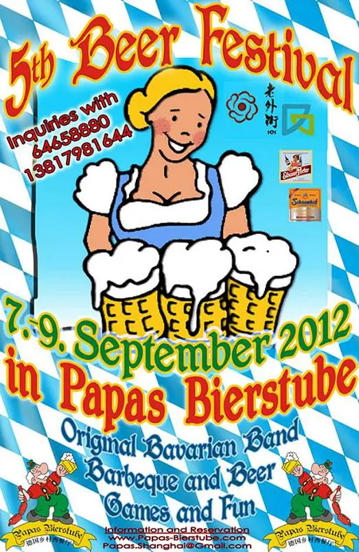 Except the two beer fest above, there is also the Annual Oktober Fest which will be held at several Paulaner Bräuhauses in Shanghai from September 29th – October 20th. Check the time and places below: