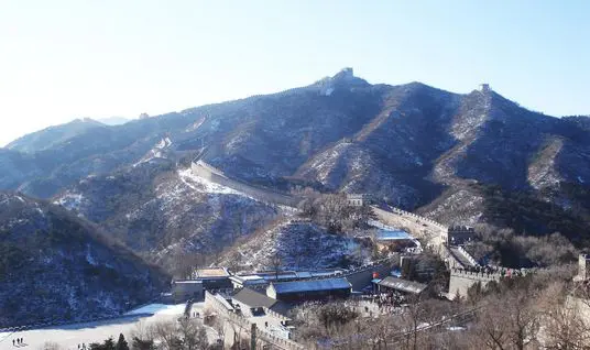 The Wall of Badaling has special characteristics. The wall is built with big bricks or granites. The granites weigh more than 1,000 kilos. (1 ton.), hard to imagine how ancient Chinese people transported these heavy stones. The inner part of the wall is built by the earth and the stones, which are firm in use. The wall is 7 m. (25 ft.) tall on average, the thickness of the base of the wall is 6 m. (21 ft.), the top of the wall 5 m. (19 ft.) wide, where five 5 horses or 10 people walk side-by-side. There are some holes in the wall, which is used for shooting. Tiles pave the cover of the wall, limes as the fillings, neat in line, and grass hard to grow on the wall. All the structures are carefully designed for military defense. It shows the ancient Chinese’s great wisdom and talents. Hiking in China to the Great Wall is full of surprises in winter.