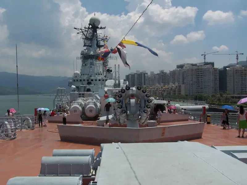 The CITIC Ming Sike Aircraft Carrier World is situated in Shatou seaside (沙头角海滨), Shenzhen (深圳) city, Guangdong province. It’s the first military park taking aircraft carrier as its theme in China and even in the world.