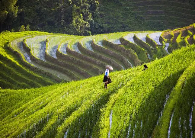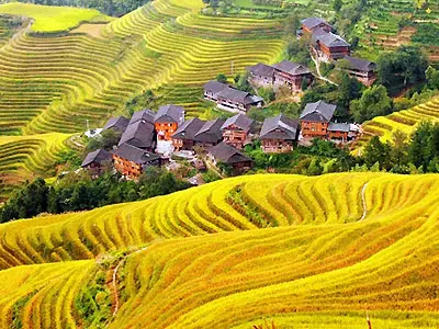 Then, continue the drive to Longsheng, home to the spectacular Longji Rice Terraces, also known as the "Dragon’s Backbone." These rice terraces, first constructed during the Yuan Dynasty (1271–1368) and expanded through the Ming and Qing Dynasties, stretch across the mountains, creating a breathtaking landscape of layered fields. The terraces change color with the seasons—mirror-like pools in spring, vibrant green in summer, golden hues in autumn, and frosty white in winter—offering a dynamic and stunning view year-round. Spend afternoon to hike at Longji rice terraces and visit the local minority villages. Stay at Longji.