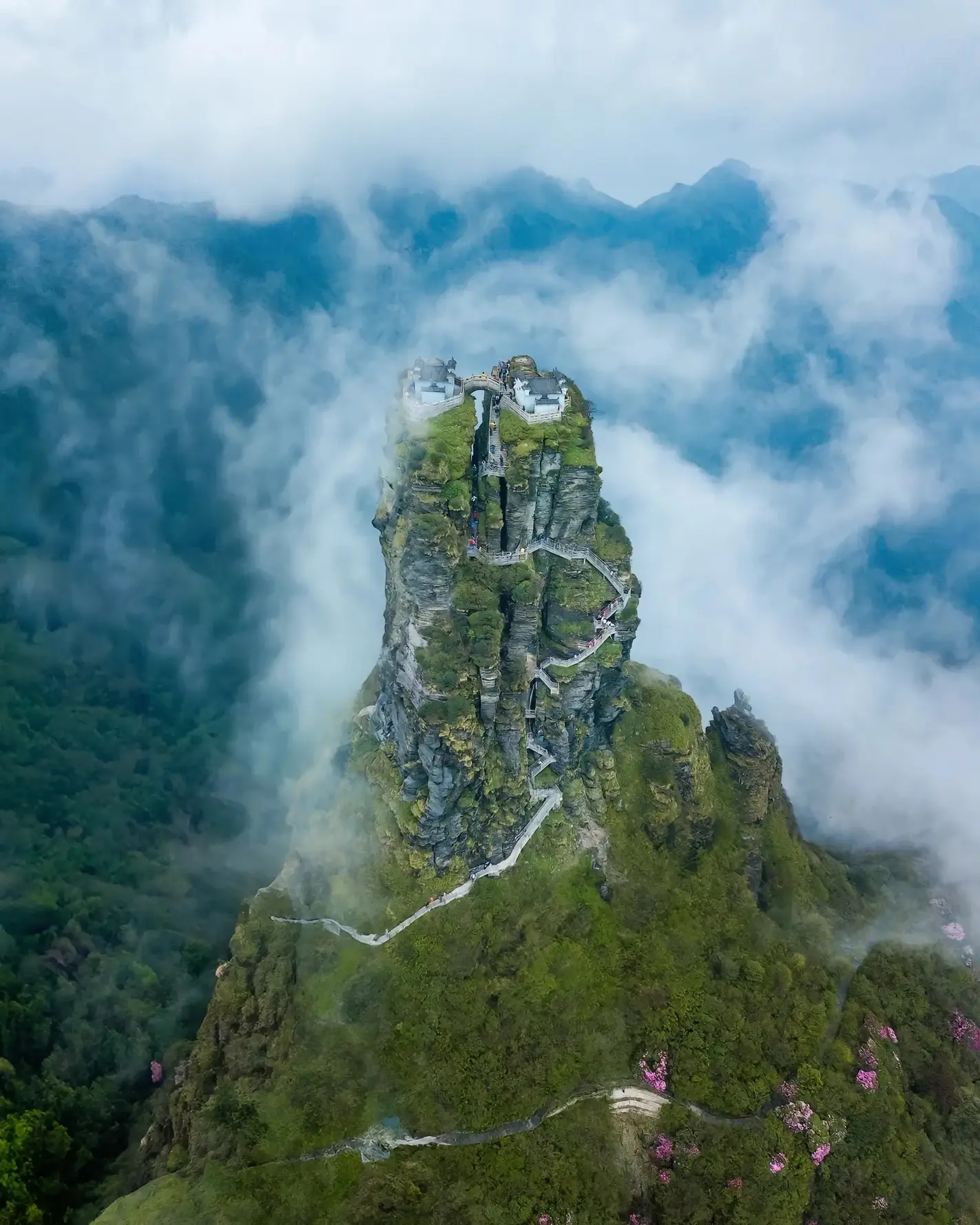 Start your day at Mount Fanjing (Fanjingshan), a UNESCO World Heritage Site often called the "Roof of Guizhou." Renowned for its unique stone forest peaks like Mushroom Rock and Eagle Peak, the mountain showcases nature's artistry and is a biodiversity haven, home to rare species such as the Guizhou golden snub-nosed monkey.