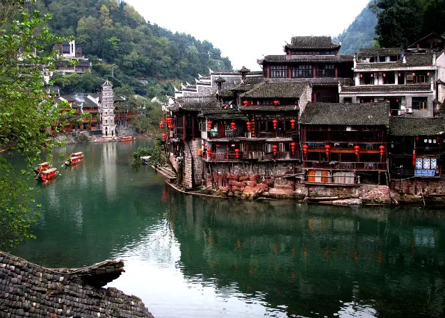 Start your morning with a wooden boat ride along the Tuojiang River, the lifeline of Fenghuang Ancient City. Admire the stilted wooden houses suspended on wooden pillars, picturesque bridges, and the town’s timeless charm.