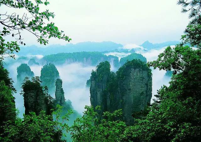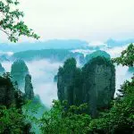 Continue to Tianzi Mountain, where you’ll marvel at the panoramic views of peaks rising in succession. Known for its four wonders—the Sea of Clouds, Moonlight Radiance, Sunshine Rays, and Winter Snow.