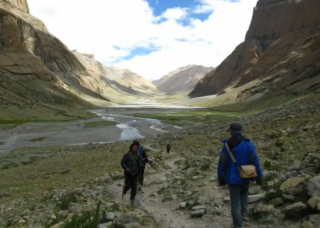 The first day's trekking is start from the Sershong and a gradual walk with multitudes of other local pilgrims chanting and praying. From here you can see the Choku Monastery up on the hillside. The trail leads to a few ups and downs till we reach our camp at Dirapuk (4,750 m). You will meet many more Bon pilgrims going in the opposite direction (Anti clock-wise) because Mt. Kailash is being worshipped by four different religions, viz Buddhists, Bons, Hindus and Jains. Overnight at Dirapuk guesthouse or camping.