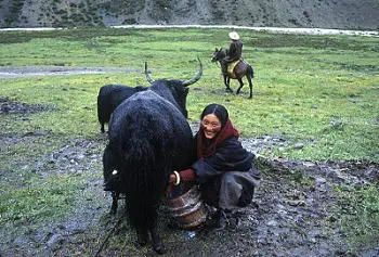 Morning try milking yaks in the morning, then ride on to Gyergo Nunnery. Explore the sights there, including the temple, mani wall, and monk’s college. Stay the night with a family at Gyergo.