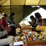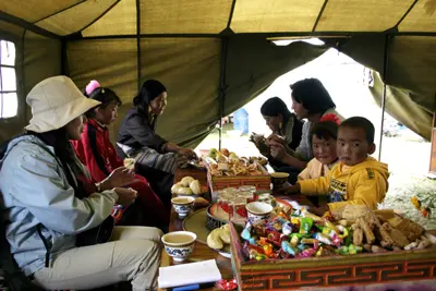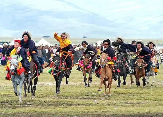 The Litang Festival is associated with the ancient Zubirishao Festival, the festival of praying around the mountain, on the Tibetan calendar. When the wild flowers and grasses are at their peak, 10 days of horse racing and festival are held to show devotion to the sacred mountain and celebrate the harvest. This is the most important festival of the grasslands. In the 1960's, the local government fixed the dates for the festival as August 1 to 7. During the festival, people gather from all over the Maoya Grassland dressed in the finest clothing with colorful tents and their best food. The grasslands are a sea of tents as the people prepare for seven days of relaxation and festival. The races themselves include long distance, trekking, riding under the belly of the horse, standing upside down on top of the horse, shooting from horseback and other breath-taking feats! Besides horse racing, there are Tibetan operas, dancing, fashion shows and other cultural events.