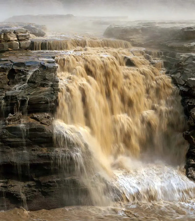 Covering an area of 60 sq.km. (23 sq.mi.), it is the largest waterfall on the Yellow River and the second largest one in China, after the Huangguoshu Waterfall in Guizhou Province.