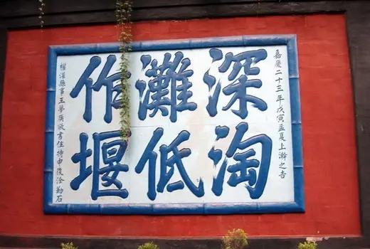 The architecture of the temple is heavily influenced by the style of the Qing Dynasty (1644-1911), with the whole temple complex environment designed to preserve a sense of beauty and quiet serenity. Engraved on the walls of the temple are many Chinese characters commemorating the experiences of learning to master water-control techniques, with those segments written by Li Bing among the most valuable. Further on in the Grand Hall are impressive statues of Li and his son, which are visited by locals regularly to convey their respects.