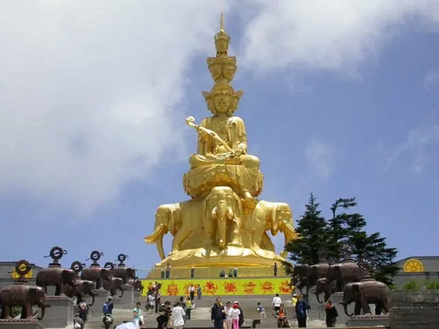 With a history of stretching over a thousand years, Wannian Temple is regarded as one of the oldest temples on Mount Emei. There is a popular legend about the instrument-playing frogs in the temple’s rectangle pond, which is said to release pleasant sounds all year round. The Temple complex’s “Beamless Hall” demonstrates the exquiste construction of Sichuan’s ancients, and the gigantic Puxian Buddha idol, measureing 8.5 meters (28 feet) high and weighing an estimated 62,000 kg (136,686 pounds) is another of Wannian’s wonders. Even more astonishing is the alleged “tooth of Buddha,” which measures 3.2 cm (1.28 inches) long and weighs 6.5 kg (14.3 pounds)!