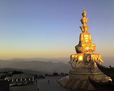 In 1996, Mt. Emei was enlisted in the world natural and cultural heritage by the UNESCO. Mount Emei (also known as E Mei Shan) is renowned worldwide for its towering Golden Summit and its four spectacles: The “cloud sea,” Emei’s magnificent sunrise, the “Buddha rays,” and the numerous saint lamps.