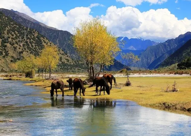 After enjoying Ranwu, drive along the G318 Highway back toward Pomi, passing through valleys, forests, and river gorges. Continue on to Tashigang Village, a traditional Tibetan settlement surrounded by farmland and pastures. With terraced fields, stone houses, and grazing yaks, the village reflects the simple rhythm of rural life in eastern Tibet.