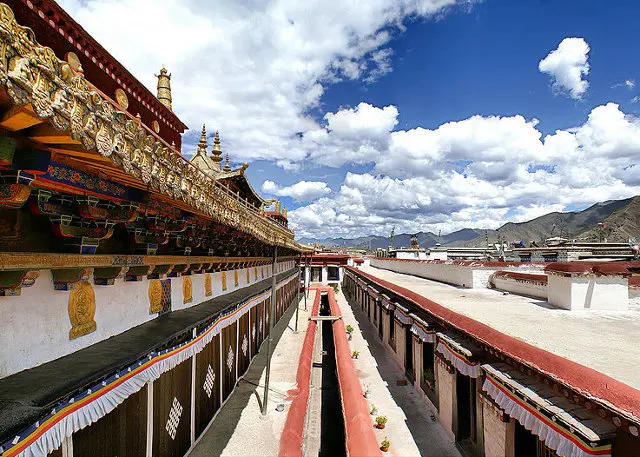 You'll visit Jokhang temple and Potala Palace. Jokhang temple is the most sacred shrine in Tibet which was built in the 7th century and located at the heart of old town in Lhasa, the circuit around it called Barkhor street, which is a good place to purchase souvenirs. Potala Palace is the worldwide known cardinal landmark of Tibet. The massive structure itself contains a small world within it. Mostly it is renowned as residence of the Dalai Lama lineages (Avalokiteshvara). Both of them are the focal points of pilgrims from Tibetan world, multitudinous pilgrims are circumambulating and prostrating in their strong faith. Overnight at Lhasa.