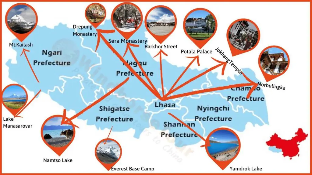 - Ngari Region: Mt. Kailash, Lake Manasarovar, Tsaparang and Guge Kingdom, Ali, etc.