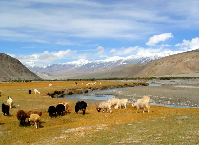 At dawn the Muztagh Ata and the blue water of the lake expose a mysterious atmosphere. With the ten minutes before the sunrise,the water change its color from purple to golden red and then to pink, showing a magical sight. When it is raining, the color turns to the black lead.