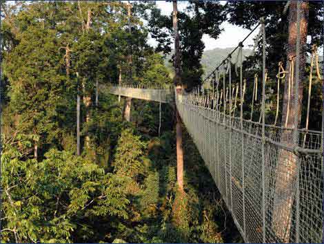 The Aerial Walkway was originally built as an important part of the eco-tourism plans of Sanchahe Nature Reserve for the reason that there lived lots of precious tropical flora and animals needing our protection. Nowadays it can provide tourists an open-air museum to bird view all kinds of natural wonders in the virgin forests and raise their awareness of the preciousness of the tropical rain forests. Moreover, it can help the local people to earn some money, thus obviating exploiting the rain forest for a livelihood.