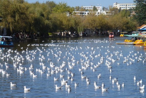 What need to note is that every winter millions of black-headed gulls will settle on the lake, playing happily on the water. Because Kunming is a Spring City and people here love birds very much, the black-headed gulls are well protected and in close relationship with people. Wondering in the Green Lake Park, watching the gulls and feeding them become tourists’ great fun.