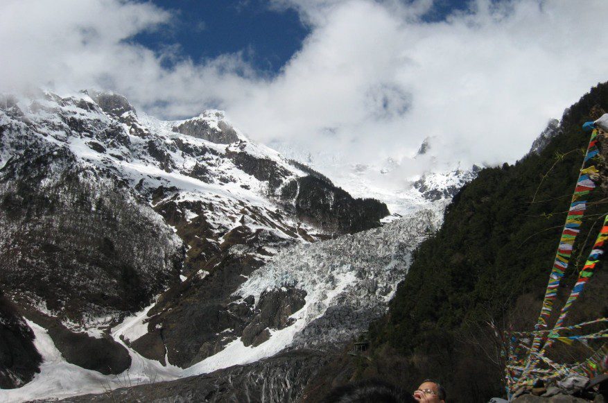 The Meili Snow Mountain is also featured by numerous peculiar glaciers, the largest and longest of which is the Mingyong Glaciers, being regarded the glacier of lowest latitude in the world. Covering a total area of 13 sq. km, the Mingyong Glaciers rushes from an elevation of 5,500 m. (18,045 ft.) down to the forest zone 2,700 m. (8,858 ft.) above the sea level in rainy seasons. When it comes to the hot season, the glacier begins to melt and thousands of glaciers will collapse to the ground. Then you will hear loud noise like thunder and you can also find the glaciers looks like a huge white snake wriggling its way among the verdant mountains. It is a splendid sight and you will surely be overwhelmed it.
