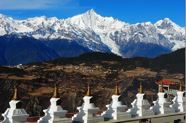 The most splendid view is the main peak called Kawagebo Peak. Learn more about the Impressive Meili Snow Mountain.