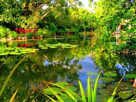 Tropical Botanical Garden is a gourd-shaped peninsula totally surrounded by the Luosuo River, a branch of the Mekong River. The area belongs to the tropical climate with an annual temperature of 21 C (70 F), which provide delightful natural condition for the survive of all the topical plants.