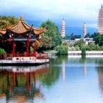 Continue to the Three Pagodas, the symbol of ancient Dali. These three independent pagodas, standing in a triangular formation, date back more than 1,800 years and have survived several major earthquakes.