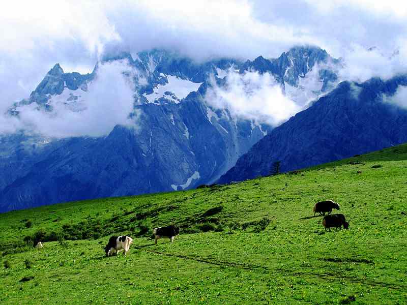 Spend much of your time today on enjoying the natural scenery and rich local culture in Lijiang. First head to the Jade Dragon Snow Mountain, a 5,596 m. (18,539 ft.) glacier made up of 13 magnificent peaks. Ride a cable car up to a high grassland meadow, where you can witness the 13 peaks lively in distance. As you descend the mountain, Every step will reveal a breath-taking view.